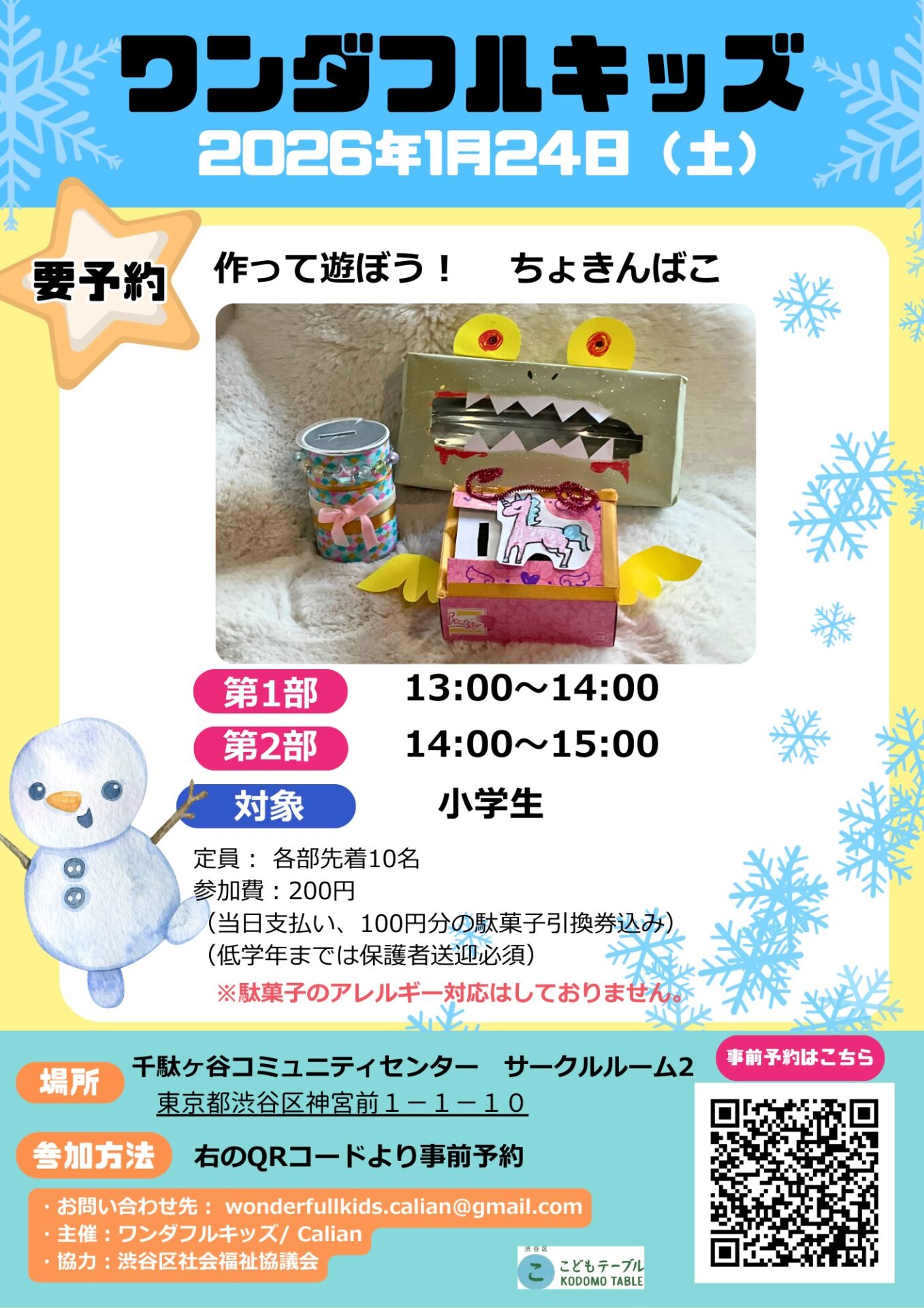 【作って遊ぼう】駄菓子やくじ引きのお楽しみもあります! 事前予約はこちらからワンダフルキッズ東京都渋谷区神宮前1-1-10 千駄ヶ谷コミュニティセンター サークルルーム21/24(土)①13:00〜14:00 ②14:00〜15:00wonderfullkids.calian@gmail.com PREVLunar NestNEXTMのおうち